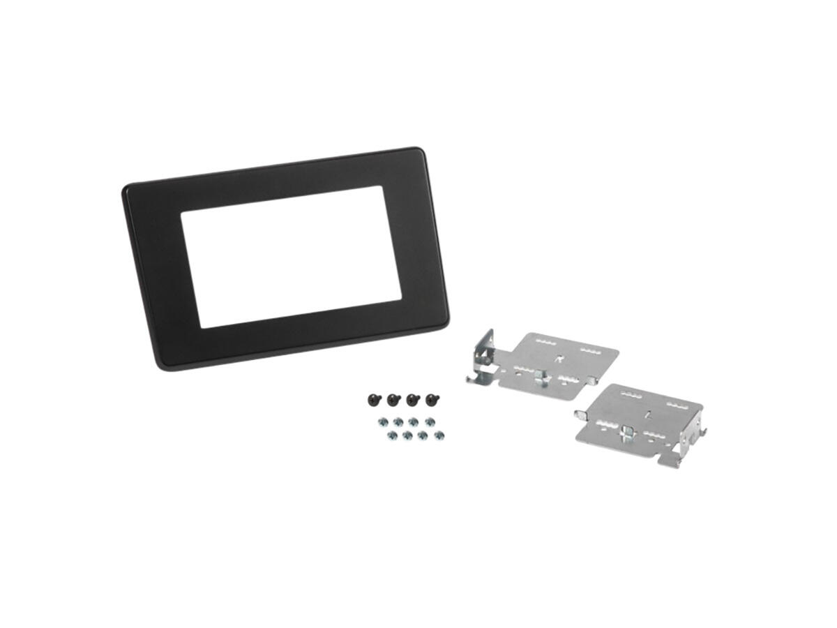 It includes all metal brackets and screws, a wiring harness and a steering wheel remote control interface for perfect installation, as well as a plastic trim plate for a clean integration in your dashboard.