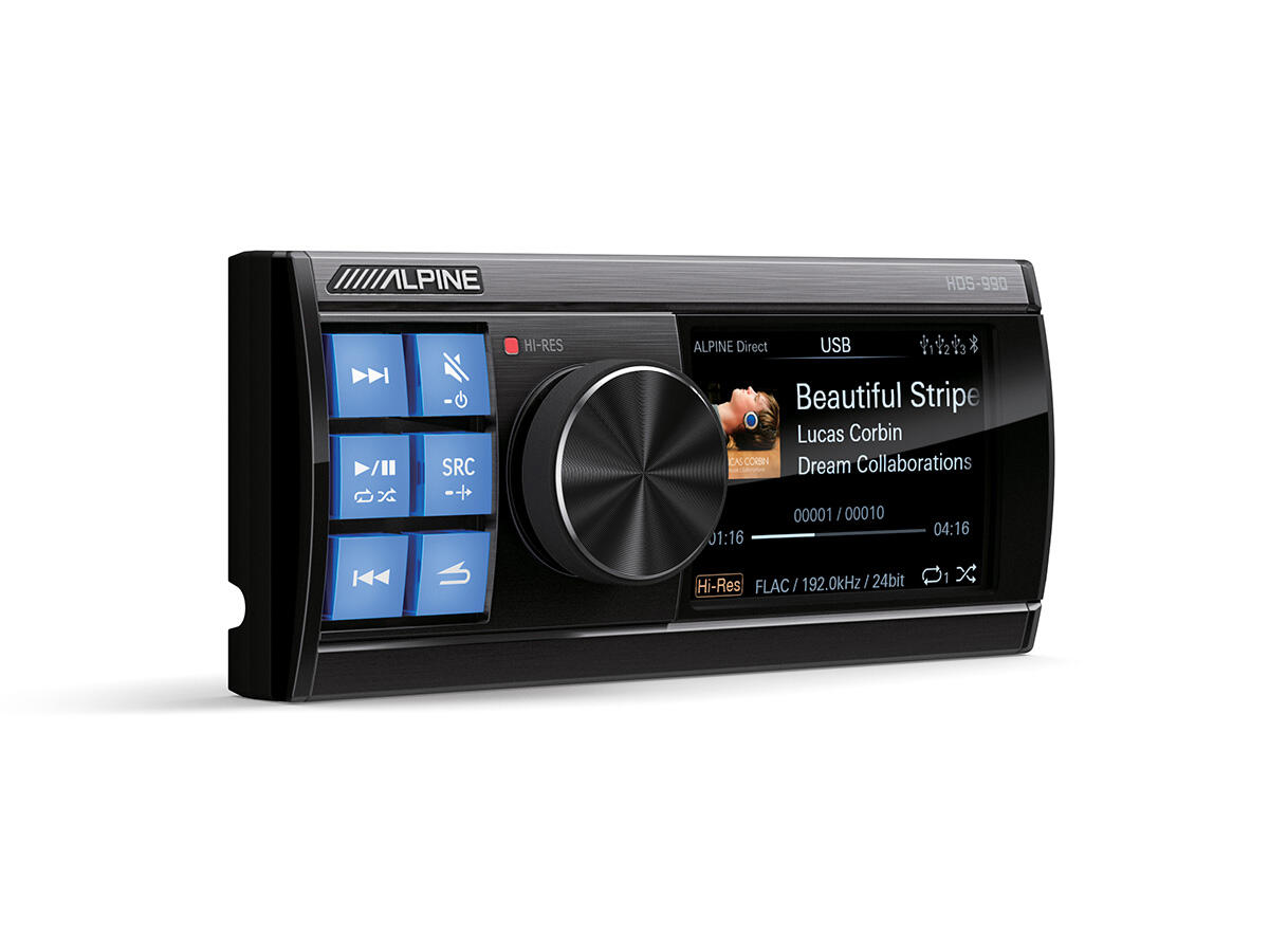 The HDS-990 Hi-Res Audio Media Player achieves 192kHz/24Bit playback via 3 wired USB DAC inputs or wireless Bluetooth® connection. This ensures that any high-resolution music files stored on a USB or smartphone will be reproduced at the intended spec. It is designed to work in parallel with your original radio (or existing aftermarket radio) and has therefore no radio or DAB+ tuner as well as no Bluetooth hands-free features or similar.