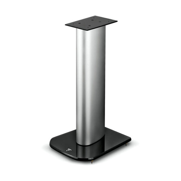 – This stand is adapted to a high installation need in your home. Black Satiny mounting plate, Matt Aluminium stand with cable pass-through, Black High Gloss tempered glass base, Rubber feet or spikes.