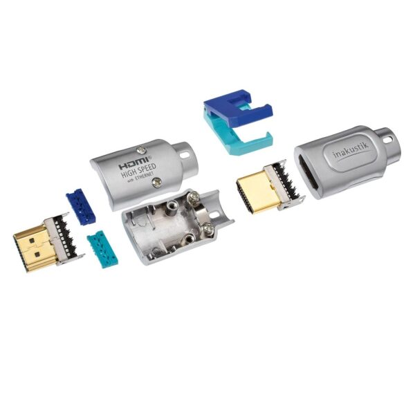 – The solid metal HDMI plug for professional HDMI connections. It allows exact, individual cable lengths to be fitted, for instance, in the wall in tubes or in narrow cable shafts. Firstly, the HDMI cable is fitted in the required length, then an HDMI in-akustik plug is assembled at both ends, by means of the IDC method of termination. The assembly kit contains all the required parts, as well as detailed assembly instructions. Note: compatible with: PROFI HDMI CABLE