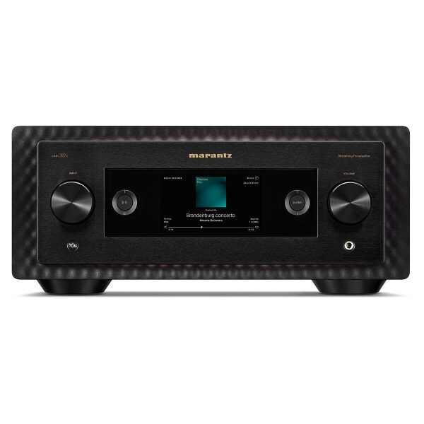 Marantz Industrial Design: Machined and brushed aluminum control surface, sculpted backshell, spun knobs, and high-resolution full color display are each striking features of 10 Series components. The design is both distinctively Marantz, drawing inspiration from classic models, and progressively modern.
